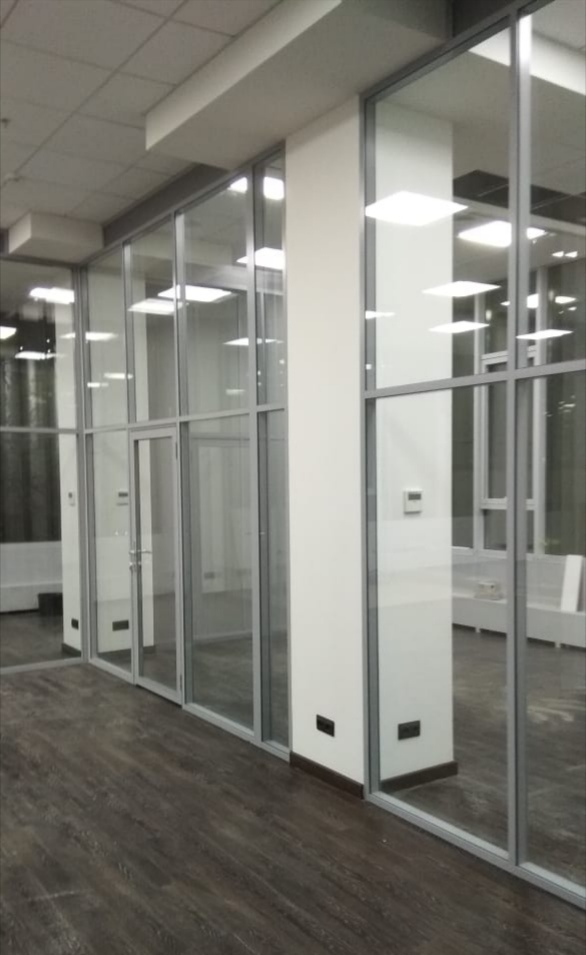 —СТЕКЛЯННАЯ ПЕРЕГОРОДКА НА АЛЮМИНИЕВОМ ПРОФИЛЕ, ДВОЙНОЙ ВИТРАЖ