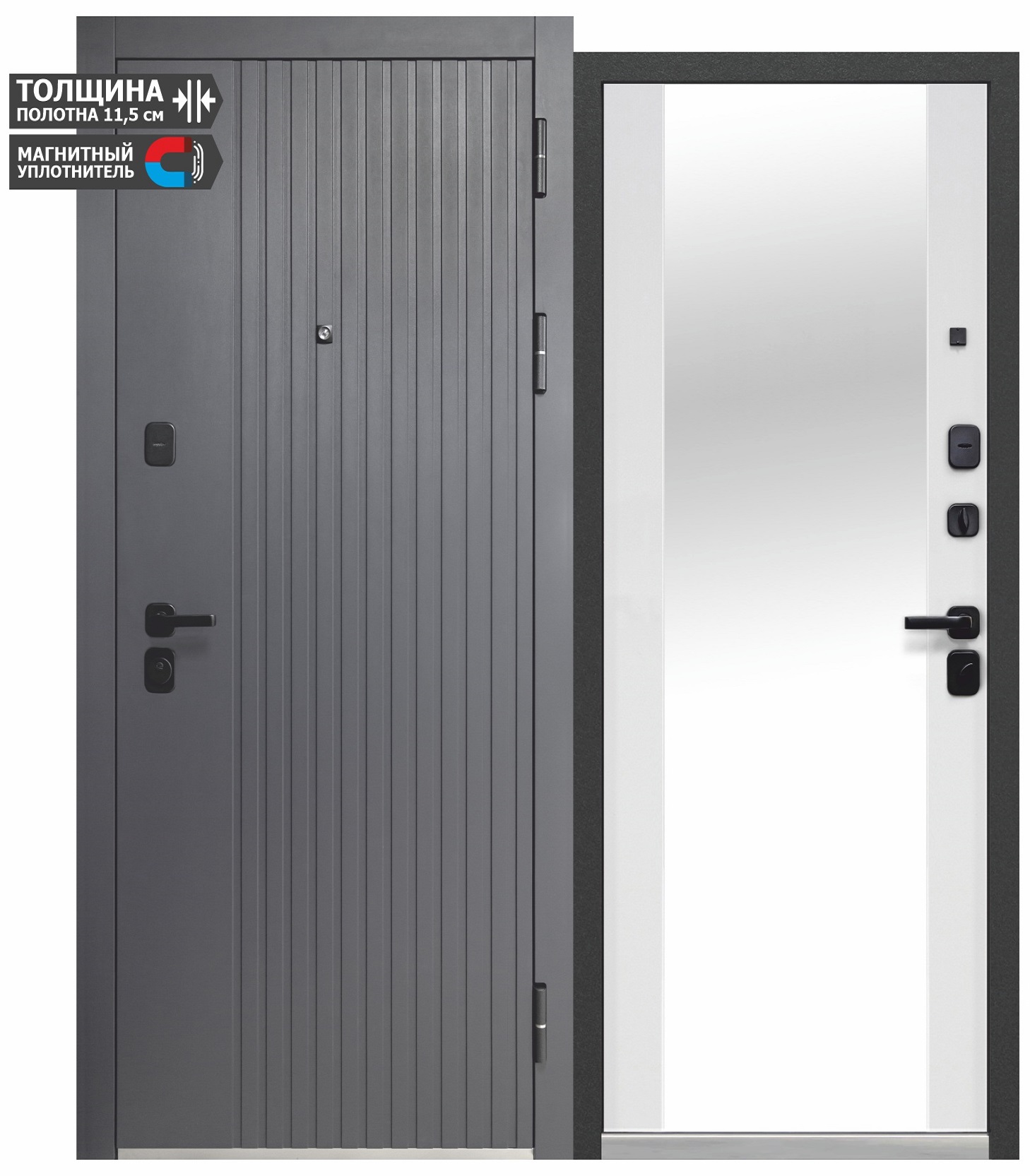 Входная дверь «LUXOR 2МДФ ВЕРТИКАЛЬ/ЭМАЛИТ БЕЛЫЙ (ЗЕРКАЛО)» от компании Modern в Адыгейск